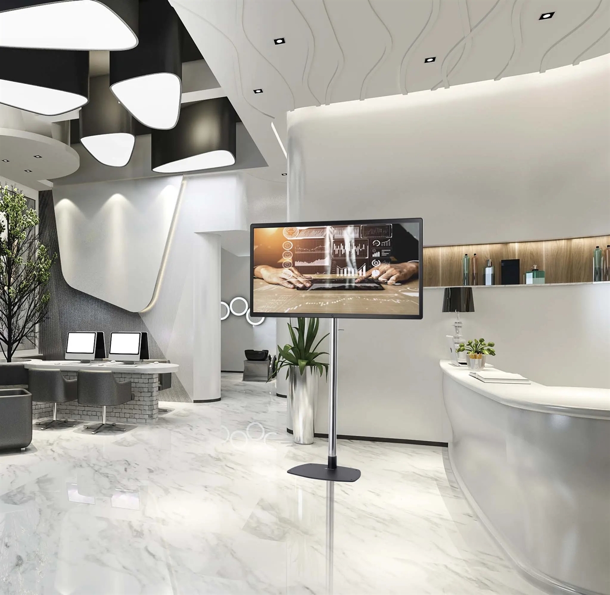 È una soluzione perfetta per presentare lo schermo in modo elegante e, allo stesso tempo, sicuro.STD01 è universale e, grazie all'ampia gamma di regolazioni in altezza, può essere facilmente adattato a molti tipi di schermi disponibili sul mercato.Una base solida e stabile con possibilità di fissaggio a pavimento lo rende perfetto per diversi ambienti, dalle hall degli hotel alle sale conferenze.La gestione integrata dei cavi rende l'installazione finale pulita e ordinata, e pertanto STD01 è perfetto per applicazioni professionali o commerciali.Supporto VESA universale adatto a diversi tipi di schermoRegolazione completa dell'altezzaBase stabileI fori sulla base consentono il fissaggio opzionale al pavimento tramite tasselliSistema di gestione dei cavi integratoSPECIFICHE DEL PRODOTTODimensioni minime dello schermo 40''Dimensioni massime dello schermo 75''Carico massimo 80 kgRegolazione dell'altezza SìCompatibilità di montaggio VESA 100x100 fino a 600x400 100x100600x400Per video max 40''-75'' 80 kgI fori sulla base consentono il fissaggio opzionale al pavimento tramite tasselliSistema di gestione dei cavi integrato
